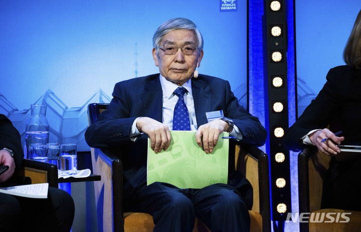 [스톡홀름=AP/뉴시스]지난10일(현지시간) 스웨덴 스톡홀름에서 열린 스웨덴 중앙은행 주최 심포지엄에 구로다 하루히코 일본은행 총재가 참석했다. 2023.01.18. |