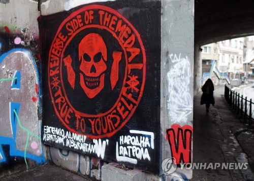 세르비아 베오그라드 시내에 그려진 와그너그룹 로고 |