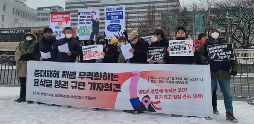 단체는 "법 시행 1년을 맞았지만 정부 당국의 노골적인 무력화 공세에 중대재해는 오히려 증가했고 노동자의 참혹한 죽음의 행렬은 계속되고 있다"고 비판했다.