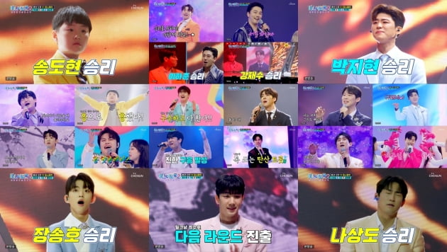 모두의 이목을 한 곳에 집중시킨 빅매치, '차세대 정통 트롯 최강자' 13살 박성온과 12살 '꺾기 신동' 송도현의 유소년부 라이벌 전은 송도현이 10:5 승리로 역대급 대이변을 일으켰다. 장민호의 '내 이름 아시죠'를 노래한 박성온은 나이가 믿기지 않는 짙은 감성으로 원곡자 장민호, MC 김성주, '저승사자' 알고보니 혼수상태까지 눈물바다로 만들었다. 연신 긴장한 모습으로 걱정을 자아냈던 송도현은 전주가 흐르자 바로 돌변, 김태곤의 '망부석(홍지윤 ver.)'으로 '송도현 표' 흥을 폭발시키며 원석 같은 천재성을 드러냈다.