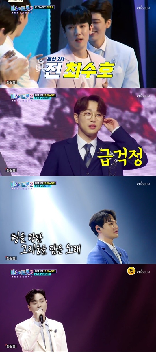 2일 방송된 TV조선 예능 프로그램 ‘미스터트롯2-새로운 전설의 시작 (이하 ‘미스터트롯2’)’에서는 본선 2차 일대일 데스매치가 열렸다.