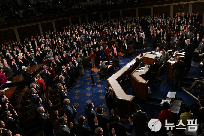 [워싱턴 로이터=뉴스핌] 최원진 기자= 제 118대 미국 연방 하원 의원들이 선서식을 하고 있다. 2023.01.07 wonjc6@newspim.com |