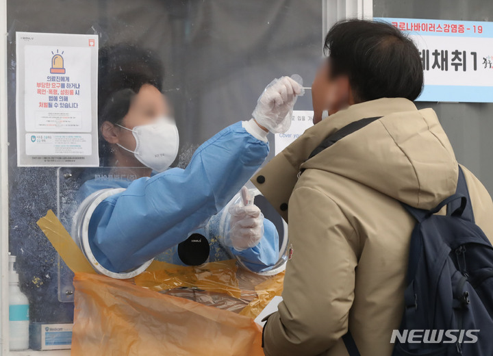[서울=뉴시스] 조수정 기자 = 지난달 21일 서울 중구보건소 서울역 코로나19 임시선별검사소에서 한 시민이 검사를 받고 있다. 2023.01.21. chocrystal@newsis.com |