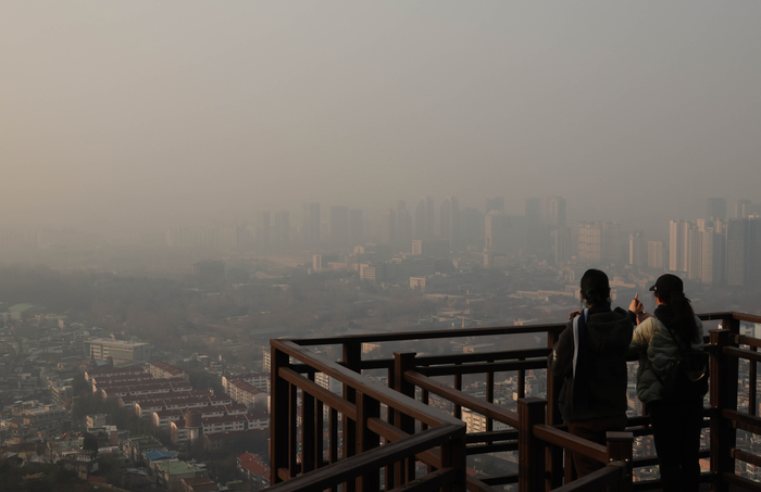 서울과 수도권에 미세먼지 비상저감조치가 발효된 6일 서울 중구 남산에서 바라본 서울시내에 미세먼지가 가득하다. [박형기 기자] |