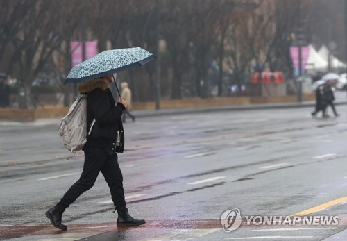 서울 광화문광장 인근에서 시민이 우산을 쓴 채 횡단보도를 건너고 있다. [연합뉴스 자료사진] |
