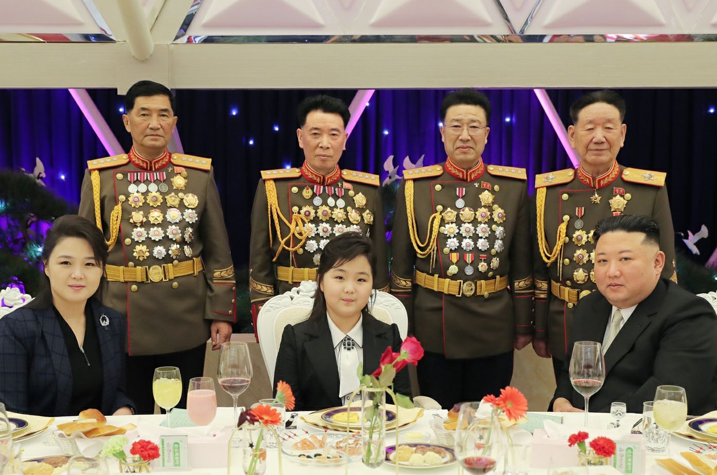 조선중앙통신은 지난 8일 건군절 기념연회 사진 여러 장을 공개하며 “결에도 그립고 뵙고 싶던 경애하는 김정은 동지께서 존경하는 자제분과 함께 숙소에 도착하셨다”고 했다. 사진에는 김정은과 리설주 사이 중앙에 김주애가 앉아 있고 북한군 수뇌부가 그 뒤에 서 있는 모습이 담겼다. 김정은과 김주애가 레드카펫 한가운데를 걸어가며 대화를 나누고, 리설주가 두세 걸음 떨어진 가장자리에서 이를 바라보고 있는 장면도 있다.