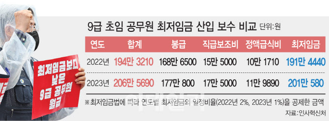 9급 초임 공무원 월 보수액 최저임금(201만원)보다 많아