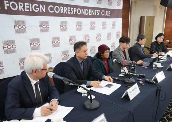 일제 강제동원 피해자 양금덕 할머니가 16일 한국프레스센터에서 열린 서울외신기자클럽 주최 강제동원 피해자 및 시민단체 기자회견에서 발언하고 있다. 연합뉴스 |