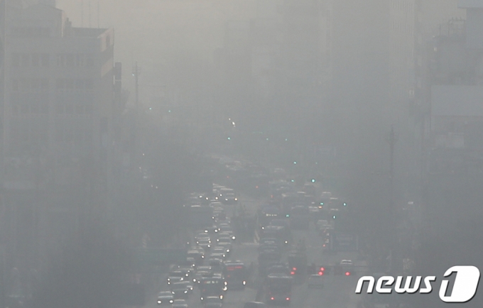 서울 전역에 초미세먼지주의보가 발령된 지난 8일 오전 서울 도심이 미세먼지로 인해 뿌옇게 보이고 있다. /사진=뉴스1 |