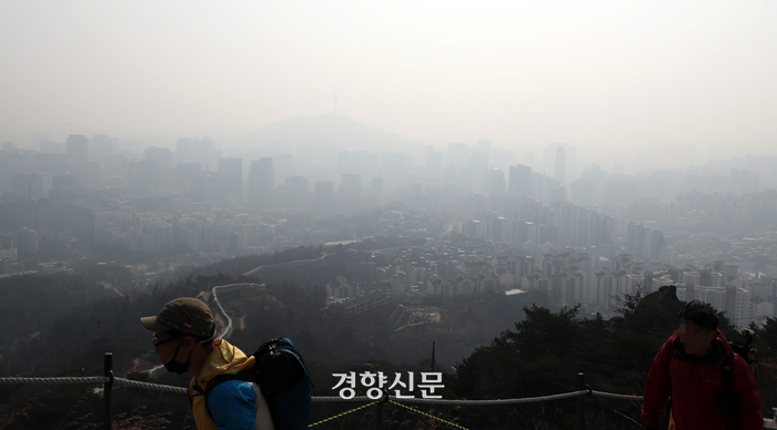 수도권에 미세먼지 비상저감조치가 시행된 6일 서울 인왕산에서 바라본 서울 시내가 뿌옇게 뒤덮여 있다./ 서성일 선임기자 |