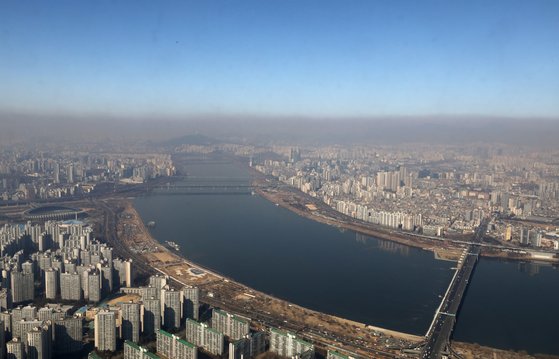 초미세먼지가 나쁨수준을 보인 27일 오전 서울 도심 위로 짙은 미세먼지 띠가 보이고 있다. 뉴스1 |