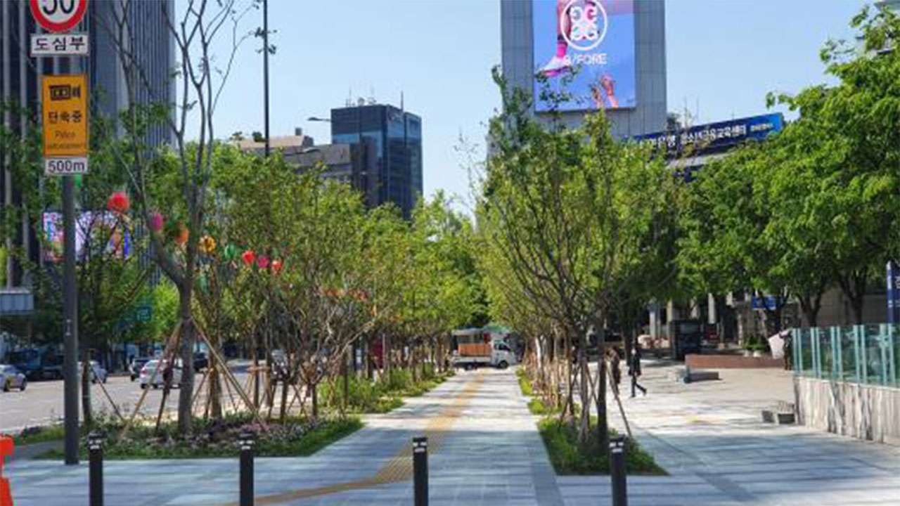 보행공간에는 기존 가로수와 별개로 길을 따라 띠녹지 1만 제곱미터를 새로 만들고, 낡은 띠녹지 2만 8천 제곱미터는 구조와 시설을 개선합니다.