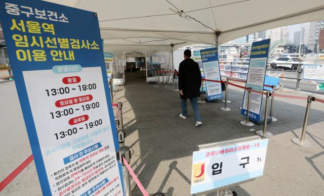 5일 오후 서울역광장 코로나19 임시선별검사소가 한산하다. 뉴스1 |