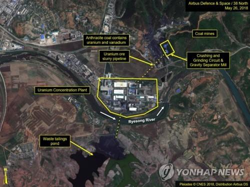 38노스는 이 밖에 우라늄 광석 분쇄 공장도 주변에 쌓인 우라늄 광석 더미와 폐광석 더미의 크기가 계속 변화하는 등 가동을 계속한 것으로 보인다고 덧붙였다.