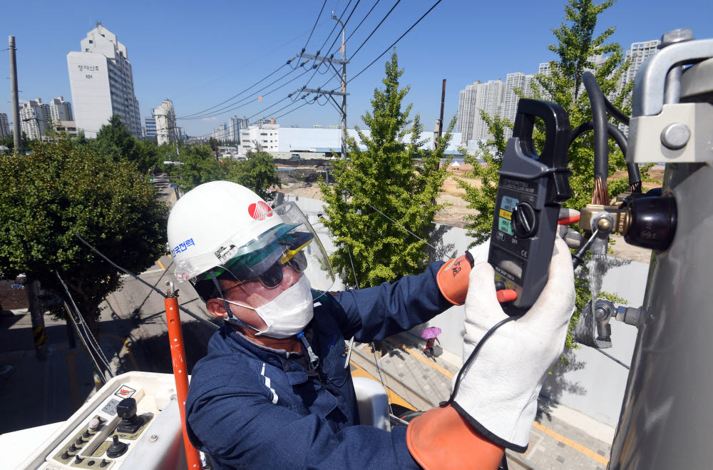한국전력 관계자가 변압기를 점검하고 있다. 출처 : 전자신문DB |