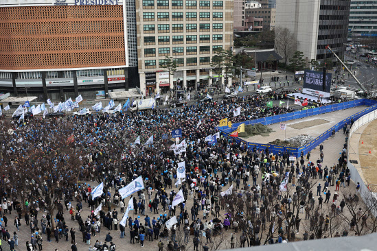 지난 11일 오후 서울시청 광장 동편에서 ‘강제동원 굴욕해법 무효 촉구 2차 범국민대회’가 열리고 있다. (사진=연합뉴스) |