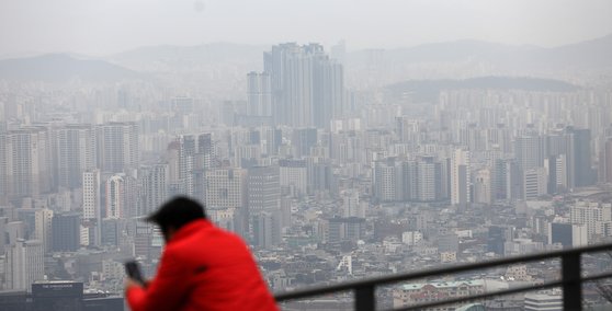 지난 7일 오전 서울 중구 남산에서 바라본 도심이 미세먼지로 뿌옇게 보이고 있다. 뉴스1. |