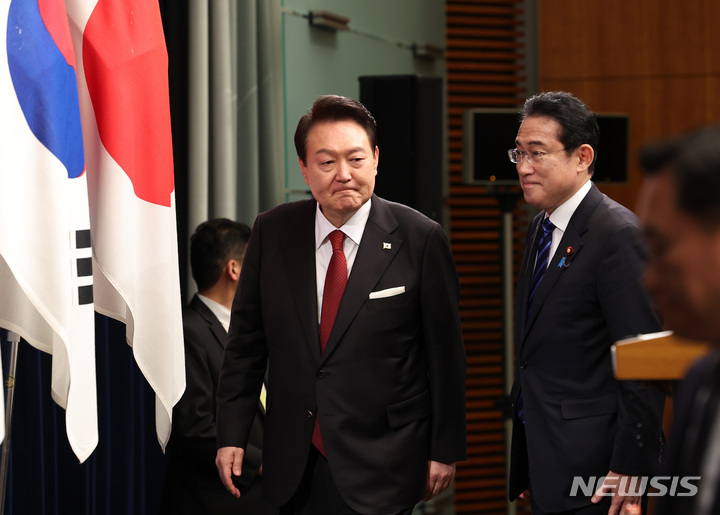 [도쿄·서울=뉴시스] 박미영 기자 = 윤석열 대통령과 기시다 후미오 일본총리는 16일 한일 정상회담에서 셔틀 외교 복원에 합의했다. 또 향후 관계 개선을 위한 다양한 외교채널 역시 복원, 한일간 협력의 새시대를 열기로 했다.