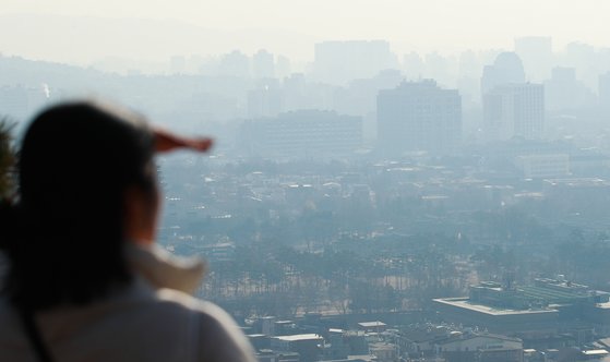 지난 6일 오전 서울 종로구 인왕산 자락길 전망대에서 바라본 도심 일대가 뿌옇다. 뉴스1 |