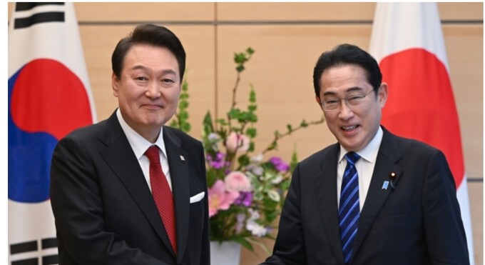 뉴스1에 따르면 대통령실은 19일 윤석열 대통령(사진 왼쪽)과 기시다 후미오 일본 총리(〃 오른쪽)의 정상회담을 "양자·다자관계의 판을 바꾼 커다란 성공"이라고 자평했다. 동시에 기시다 총리의 '상응하는 호응'을 강조하며 공을 일본 정부에 넘겼다.