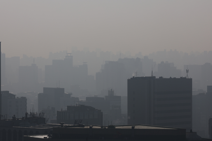 미세먼지 농도가 ‘나쁨’ 수준을 보인 20일 오전 서울 시내가 부옇게 보인다. |