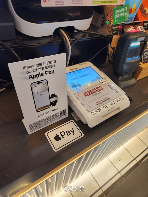 서울시내에서 대형 프렌차이즈 카페를 운영하는 김모씨(27)는 “애플페이 도입이 확정된 이후 본사에서 결제 단말기를 근거리무선통신(NFC) 단말기로 모두 교체해줬다”면서 “오늘 매장을 방문한 아이폰을 쓰는 고객들도 삼성페이로 결제하듯이 휴대폰을 (단말기에) 대고 결제하는 중”이라고 말했다.