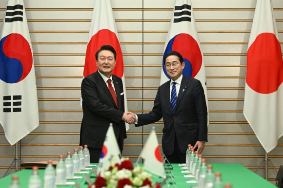 윤석열 대통령과 기시다 총리는 도쿄에서 열린 정상회담에서 강제징용 문제를 포함한 양국 간 현안 해결에 합의하고 정상 간 셔틀 외교도 재개하기로 했다.