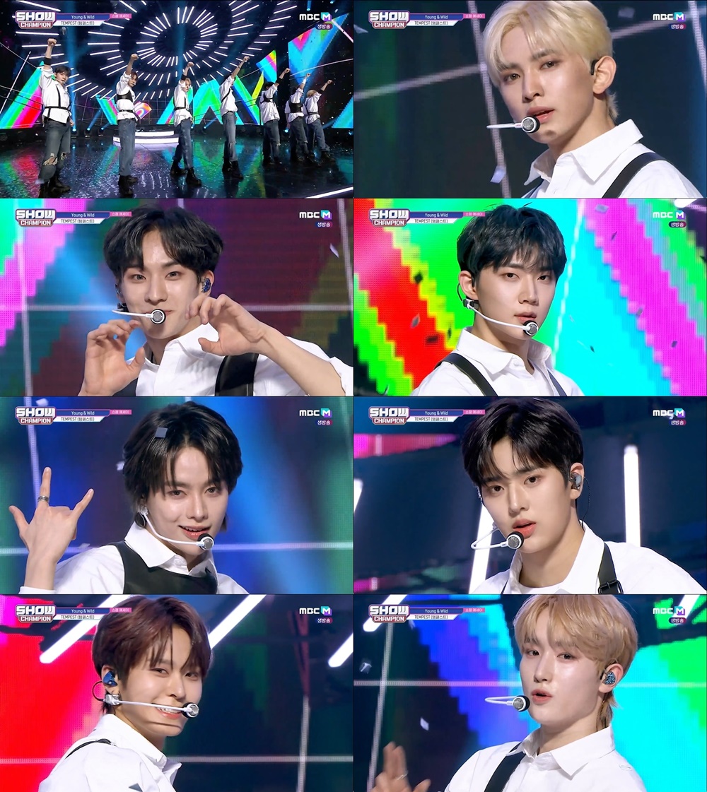 템페스트(한빈, 형섭, 혁, 은찬, 루, 화랑, 태래)는 22일 방송된 MBC M '쇼! 챔피언'의 '쇼챔 에세이' 코너에 출연해 그동안의 활동을 돌아보고 K-POP 팬들에게 '희망'의 메시지를 전하는 'Young & Wild'(영 앤 와일드) 무대를 펼쳤다.