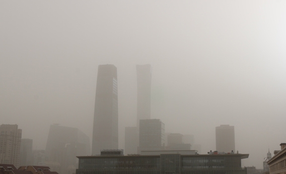 22일 오전 중국 베이징에 황사 황색경보가 내려진 가운데 베이징 시내 주요 건물이 황사로 인해 형체가 흐릿하게 보인다. 2023.3.22 연합뉴스 |