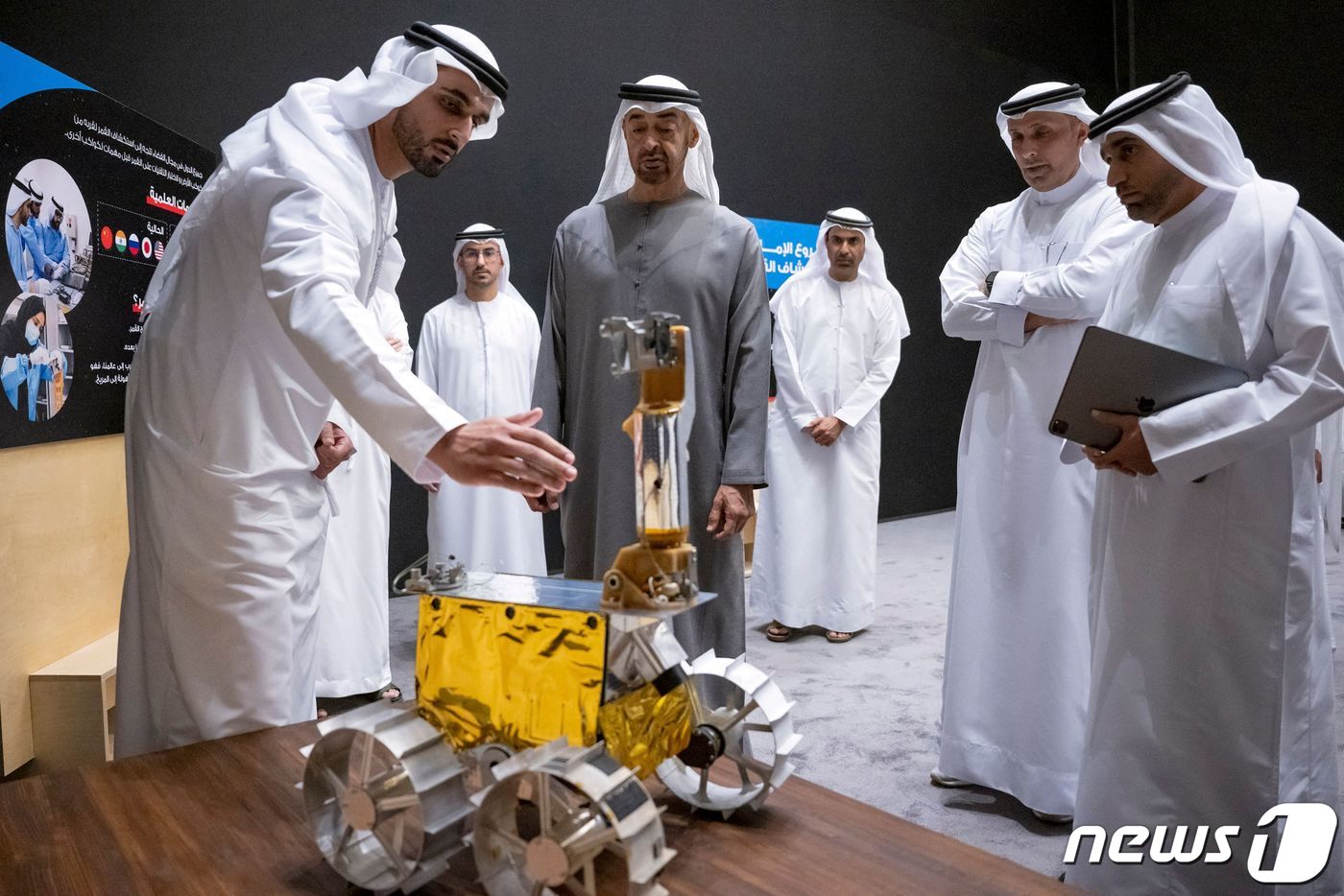 지난해 6월 아랍에미리트(UAE) 수도 아부다비에서 모하메드 빈 자이드 알 나하얀 UAE 대통령이 자국 달 탐사 차량 '라시드'를 구경하고 있다. (UAE 대통령실 제공) 2022.06.15. ⓒ AFP=뉴스1 ⓒ News1 김성식 기자