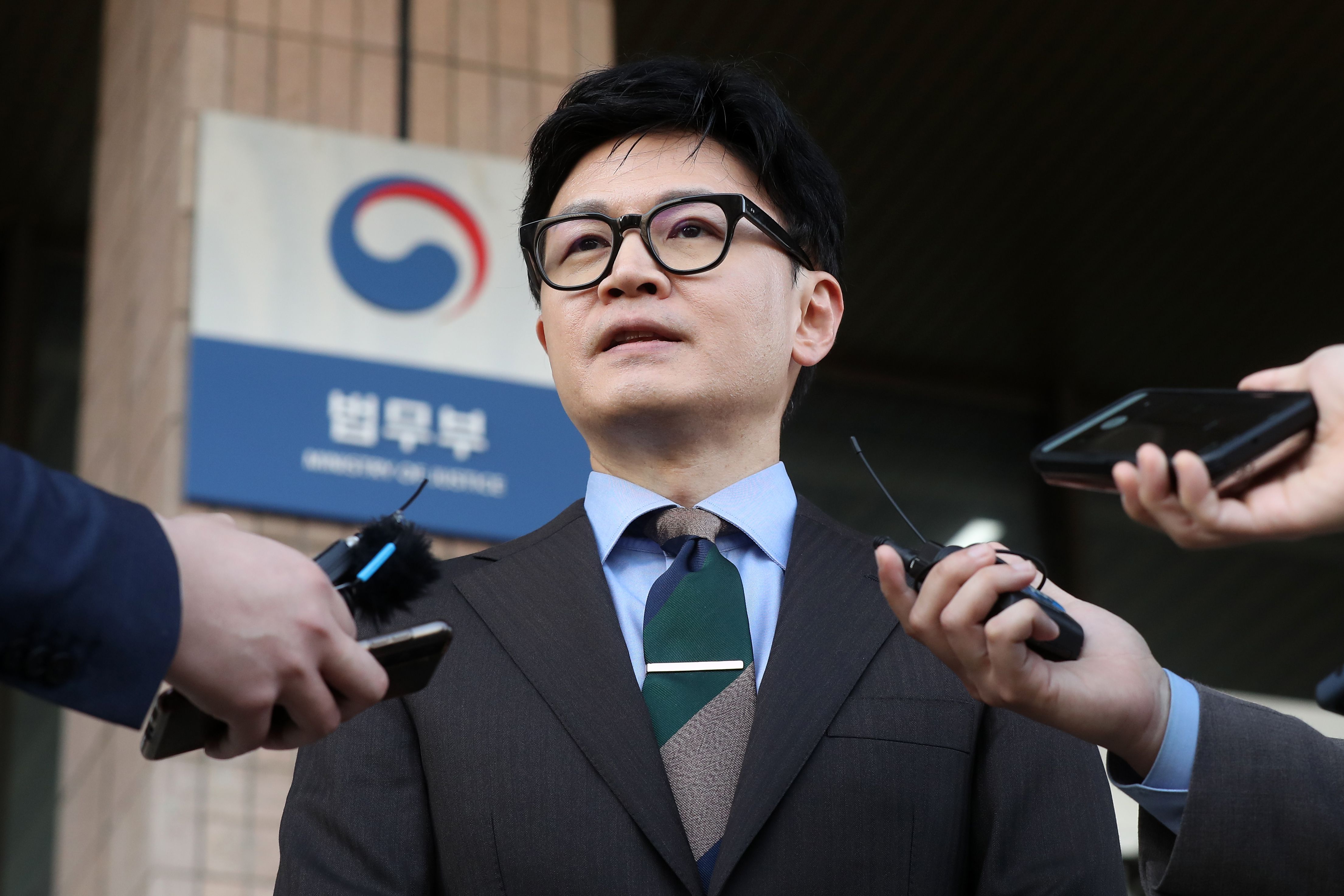 한동훈 법무부 장관이 23일 오후 경기 과천 법무부에서 퇴근하며 헌법재판소의 '검수완박(검찰 수사권 완전 박탈)' 입법 무효 청구 각하 결정에 대한 입장을 밝히고 있다. /뉴스1 |