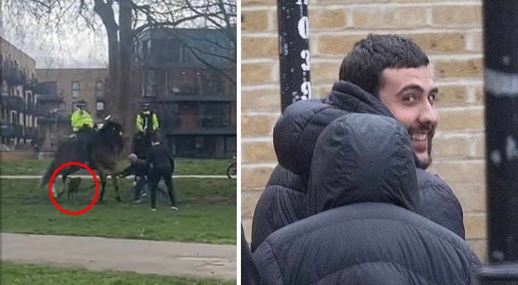 英 공원서 말(馬) 공격한 개…주인 “방어행동” 해명 논란 / 사진=아메리칸 불리가 경찰마를 공격하는 순간(왼쪽·틱톡), 가해견 견주 하칸 나야지의 모습. |