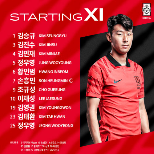 2022 카타르 월드컵에서 멀티골을 넣은 조규성(전북)이 원톱으로 서고 손흥민과 이재성(마인츠), 정우영(프라이부르크)이 2선에서 뒤를 받칠 것으로 보인다. 중원에선 황인범(올림피아코스)과 정우영(알사드)이 호흡을 맞춘다.