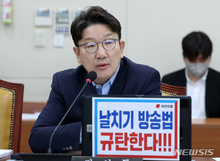 [서울=뉴시스] 이영환 기자 = 권성동 국민의힘 의원이 지난 21일 오후 서울 여의도 국회에서 열린 과학기술정보방송통신위원회 전체회의에서 발언을 하고 있다. 2023.03.21. 20hwan@newsis.com |