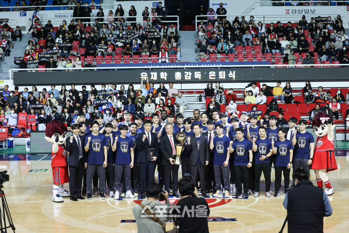 [스포츠서울 | 울산=이웅희기자] 감독들도 인정하는 명장 현대모비스 유재학 총감독이 은퇴식을 치렀다. 사령탑들에 귀감이 된 유 총감독이 현대모비스와의 이별을 고했다.