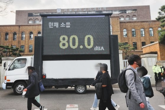 경찰 관계자는 “이날 처음 도입한 차량”이라며 “내부에서 데시벨(dB)을 측정한 뒤 전광판으로 송출하는 시스템”이라고 말했다. 이어 “집회 참가자들과 시민들에게 (집회로 인한) 소음 현황을 직접 보여주고 소음을 낮출 수 있는 계기를 마련해 줄 수 있다”고 설명했다.