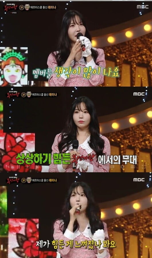 이날 간절곶을 꺾지 못하고 복면을 벗은 레이나는 "사실 신봉선 언니가 알아봐주길 바랐었다"라고 밝혀 이목을 끌었다. 이어 그는 "제가 마음이 힘들 때 마주쳤었는데 제가 힘든 게 느껴졌었나 보더라. 제게 힘이 되는 말을 많이 해주셨다"라고 입을 뗐다.