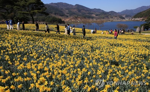 노란 수선화 물든 지리산치즈랜드 |