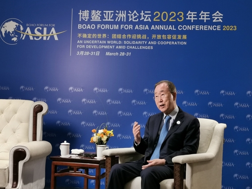 반 전 총장은 28일 자신이 이사장으로 있는 보아오포럼 연례총회가 열린 중국 하이난에서 연합뉴스와 만나 "세계 평화와 안보가 위협받는 곳 중 하나가 한반도"라며 "북한의 대륙간탄도미사일(ICBM) 발사 등 잇따른 미사일 도발에 한국인들이 고통받고 있다"고 말했다.