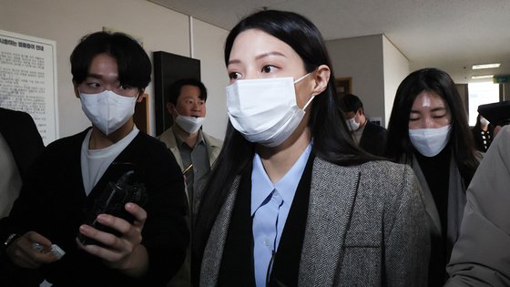 조국 전 법무부 장관의 딸 조민(32)씨는 2019년 9월 자신의 집에 취재 목적으로 방문해 초인종을 누른 혐의로 2020년 8월 TV조선 기자와 PD를 고소했다. 서울남부지법 형사3단독 이근수 부장판사는 이 사건 1심에서 무죄를 선고했다. 사진은 지난 16일 부산대 의학전문대학원 입학 취소 관련 재판에 증인으로 출석하는 조씨의 모습. 송봉근 기자 |