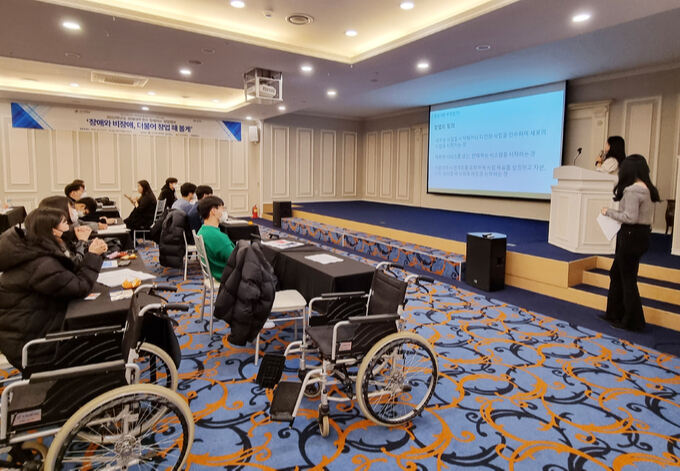 장애 학생들을 대상으로 선배 취업 특강을 진행하고 있다. 대구대학교 제공 |