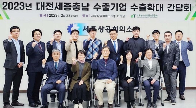 28일 세종상공회의소 회의실에서 진행된 ‘대전·세종·충남지역 수출기업 간담회’는 배·딸기 등 신선 농산물은 물론, 홍삼·삼계탕 등 가공식품과 김·해삼 등 수산 식품까지 모두 망라한 충청권 농수산식품 수출기업들과 지자체 수출 담당 공무원 등이 참여해 올해 수출 확대를 위한 다양한 건의와 심도 있는 토론을 진행했다.
