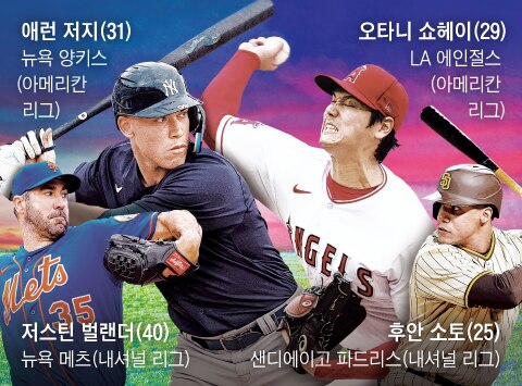 미 스포츠 매체 ESPN은 최근 야구 전문가들 의견을 모아 이번 시즌 ‘톱 100′ 선수를 선정했다. 1·2위는 이번 WBC를 빛낸 오타니 쇼헤이(29)와 마이크 트라우트(32·이상 LA 에인절스). 3위는 뉴욕 양키스 슬러거 애런 저지(31)다. 저지는 지난 시즌 62홈런을 쳤는데, 이는 금지약물 복용 이력이 없는 선수 중 역대 1위 기록이다. 2022시즌이 끝나고 저지는 양키스와 9년 3억6000만달러에 재계약했다. 전문가들은 저지가 올해도 빛날 것이라 점쳤지만 작년처럼 60홈런을 기록하진 못할 것으로 보고 있다.