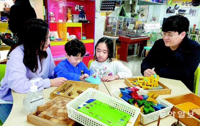 26일 인천 중구 중앙동 재미난박물관을 찾은 가족들이 과학 교구를 만지며 즐거운 시간을 보내고 있다. 재미난박물관에는 150여 종의 과학 체험 교구가 비치돼 있다.