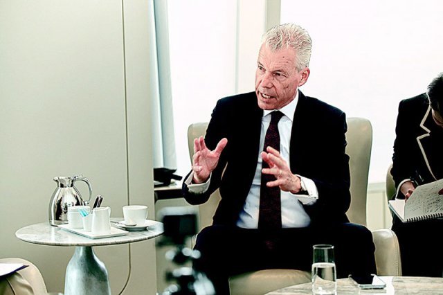 토르스텐 뮐러외트뵈슈 롤스로이스 CEO가 22일 서울 송파구 시그니엘 서울에서 진행된 기자단 간담회에서 핵심 전략과 비전 등을 설명하고 있다. 롤스로이스 제공 |