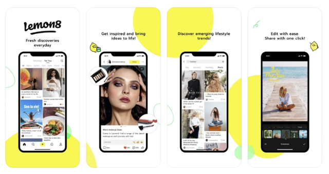 틱톡 모기업 바이트댄스가 만든 사회관계망서비스 애플리케이션 '레몬8'의 앱 화면. 인스타그램과 비슷한 사진형 SNS다. 앱스토어 캡처 |