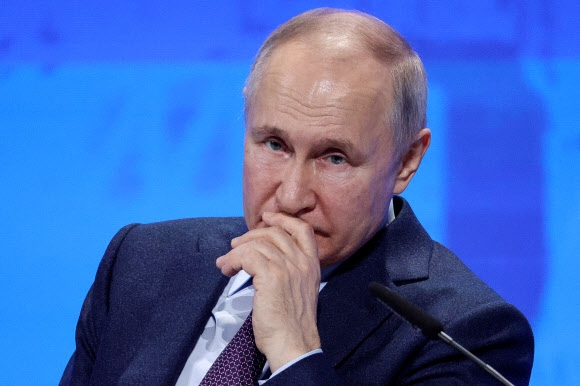 블라디미르 푸틴 러시아 대통령이 16일(현지시간) 모스크바 국제 음악의 전당에서 열린 ‘러시아 산업·기업인 연맹’(RSPP) 제17회 회의에 참석하고 있다. 2023.3.16 타스 연합뉴스 |