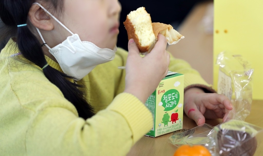 지난해 조리사와 조리실무사의 파업으로 급식이 중단돼 충북 청주시의 한 초등학교에서 초등학생이 빵과 우유 등 간편식을 점심으로 먹고 있다. [연합] |