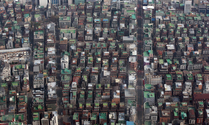29일 서울 송파구 롯데월드타워 서울스카이 전망대에서 주변 주택 단지가 보이고 있다. 뉴스1 |