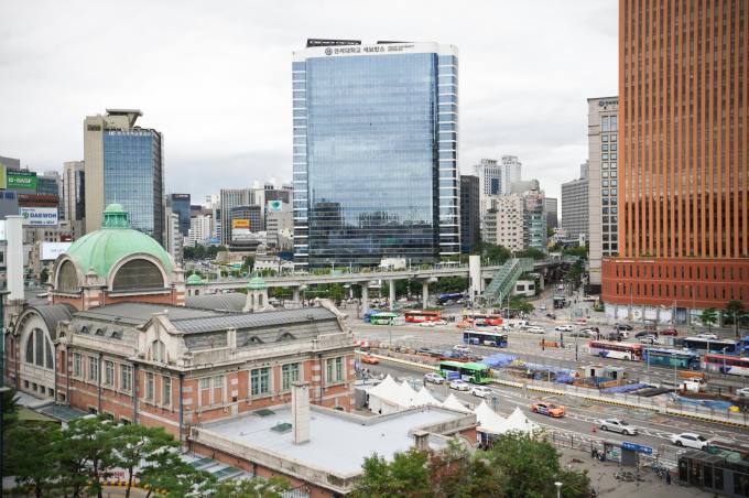 서울역 뒤에서 바라본 세브란스빌딩(중앙 유리건물). 이 빌딩 일대가 일제강점기 '세브란스병원'과 '세브란스의학전문학교' 터다. 사진=임형택 기자 |
